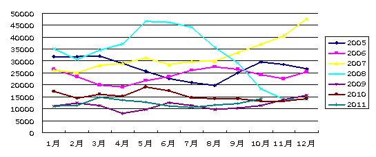 圖2. 2005-2011年克拉克松海運(yùn)綜合指數(shù)走勢(shì)比較