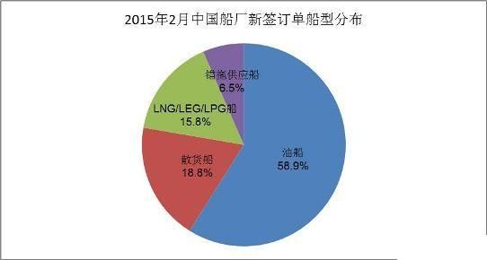 按船廠分析,2015年2月,接單量排名前三位的船廠依次為大連船舶重工、新楊子造船和外高橋造船,接單量分別為17.6萬(wàn)、6.1萬(wàn)和5.2萬(wàn)CGT。