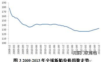 新船成交量的回落必然導致新船價格上升動力逐漸趨弱,但短期內新船價格走低的可能性也不大。由于2013年成交量的大幅增長,大型船廠的接單壓力大幅緩解,部分船廠開始選擇性接單,提價逐漸成為共識。此外,新的經濟增長周期正在逐步形成,原材料價格的小幅上漲和勞動力成本的剛性抬升均對船舶制造成本產生有力支撐。在這種情況下,預計2014年上半年,新船價格有望繼續(xù)緩慢上漲;2014年下半年開始,新船價格上升動力將逐漸減弱,保持平穩(wěn)的可能性較大。
