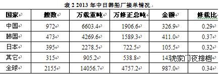 一、2013年全球船舶市場總體情況