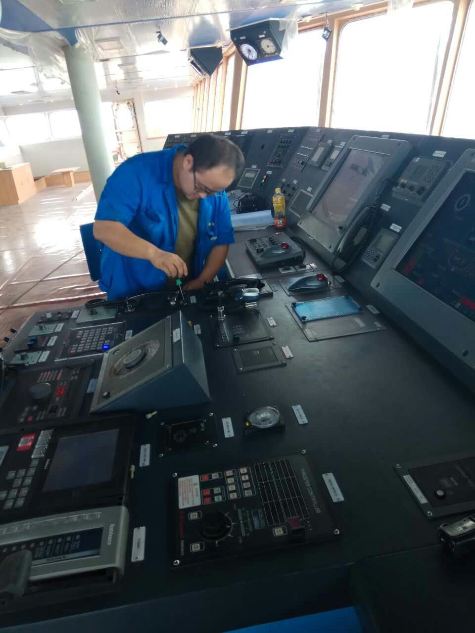推開集控室的門就被一個人的氣場所吸引,身材一點兒都不魁梧但給人絕對精悍的感覺,他就是輪機(jī)調(diào)試員梁桂明。畢業(yè)兩年,早已不再是那個跟在師傅身后的懵懂少年,現(xiàn)獨立負(fù)責(zé)BS09船的遙控閥、液位遙測、壓載水等項目的調(diào)試工作。從艏部空艙到貨艙、壓載艙、管弄、邊空艙……據(jù)說每一個艙室都是體力活,當(dāng)被問到累不累的時候他卻笑著說“不累,就當(dāng)鍛煉身體了。”