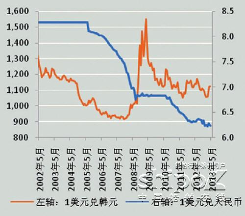 自2013年以來,在船市極為蕭條的形勢下,人民幣對美元升值對中國造船業(yè)造成了嚴重的影響。2013年以來,相比其他主要造船國貨幣而言,唯有人民幣對美元還在逆勢升值。在2012年底到2013年5月26日期間,人民幣對韓元、日元、歐元分別升值4.74%、20.99%、6.62%。