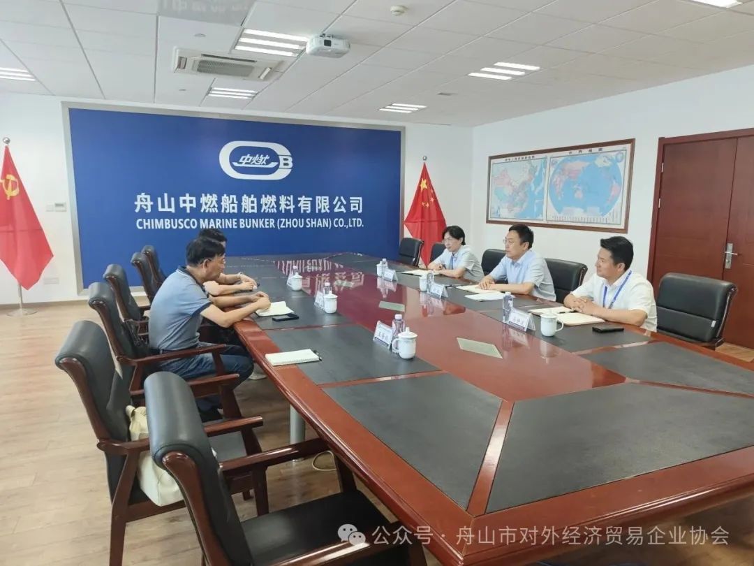 8月19日,協(xié)會常務(wù)副會長兼秘書長陳國強帶隊走訪理事單位舟山中燃船舶燃料有限公司,開展實地調(diào)研與座談交流。秘書處工作人員一同參加調(diào)研。