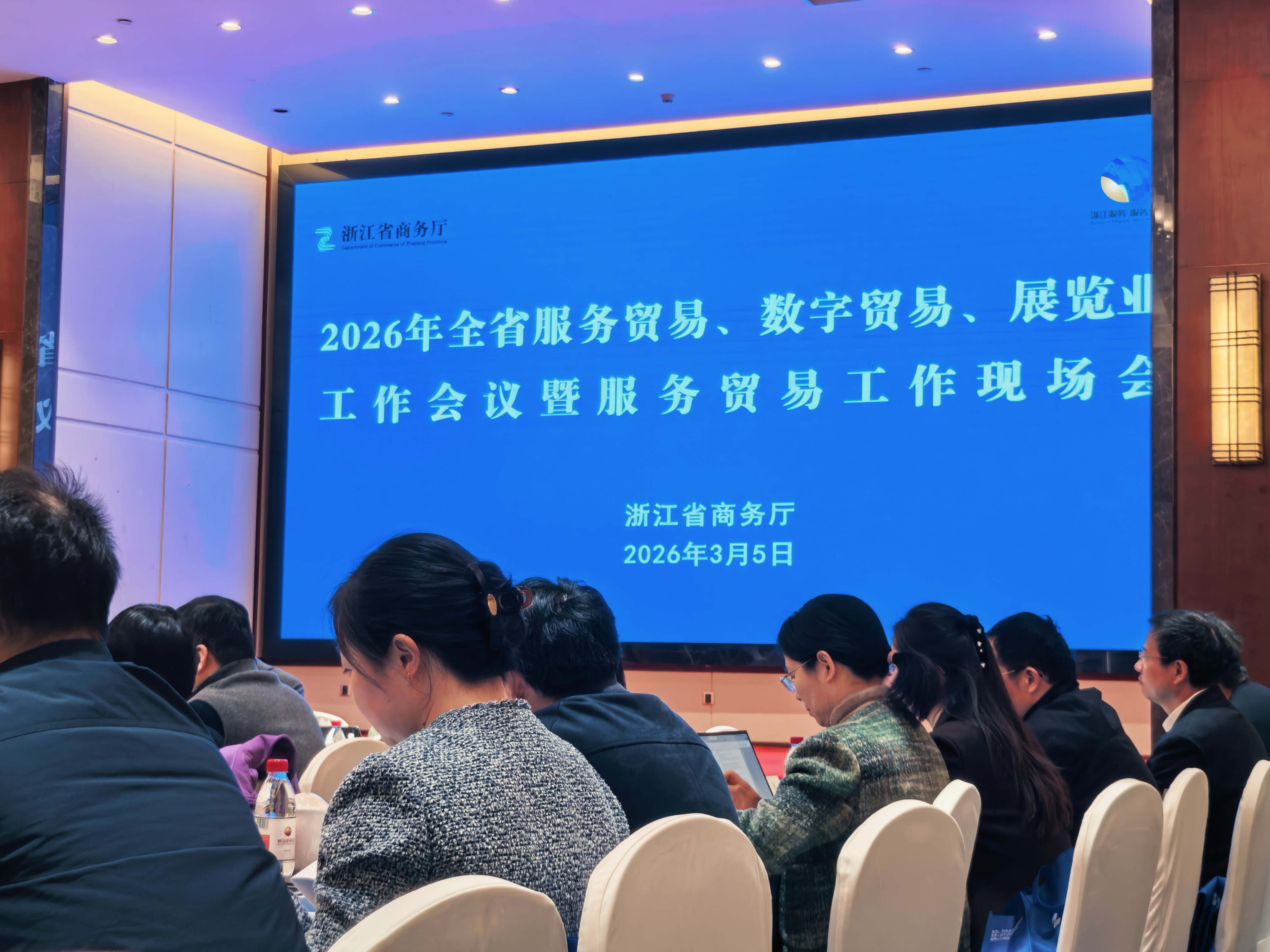 為深入貫徹全國服務(wù)消費(fèi)和服務(wù)貿(mào)易工作會(huì)議精神,落實(shí)省委經(jīng)濟(jì)工作會(huì)議和全省商務(wù)工作會(huì)議部署要求,總結(jié)2025年全省服務(wù)貿(mào)易、數(shù)字貿(mào)易發(fā)展成效,部署2026年重點(diǎn)工作任務(wù),2026年3月5日至6日,全省服務(wù)貿(mào)易、數(shù)字貿(mào)易、展覽業(yè)工作會(huì)議暨服務(wù)貿(mào)易工作現(xiàn)場會(huì)在金華東陽順利召開。各市商務(wù)局分管領(lǐng)導(dǎo)及相關(guān)主管處室負(fù)責(zé)人,部分縣(市、區(qū))商務(wù)主管部門分管領(lǐng)導(dǎo),國家特色服務(wù)出口基地、省級數(shù)字貿(mào)易示范區(qū)主要負(fù)責(zé)人齊聚東陽,共商全省服務(wù)貿(mào)易、數(shù)字貿(mào)易、展覽業(yè)高質(zhì)量發(fā)展大計(jì)。